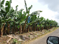 Along the drive to and from the airport in Douala (about 1-1/2 hours each way) and to Limbe in the evening, we were first introduced to Cameroon's rich agriculture. Basically, if you are a plant this is the place to be. Coco, Coffee (arabica and robusto), Bananas, Plantains, Mango, Pineapple, Yams, Coconut, Rubber Trees - all these plus more are grown here and sold as exports. Most of the Banana Plantations we saw were owned by Del Monte. A former Governor of one of Cameroon's regions has joined us on our travels, and is teaching us many things about the country. For instance, Cameroon's Department of Agriculture has found a way to grow these crops so that they produce more fruit and are shorter so that they are easier to harvest. Very fascinating.
